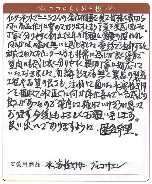 20年以上ご愛用のお客様よりおハガキをいただきました。