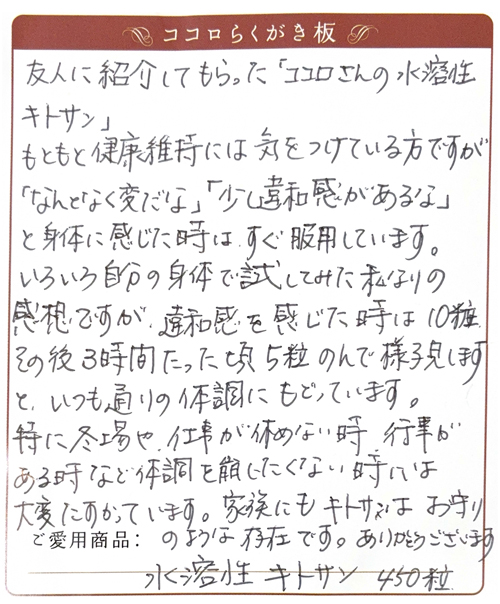 ココロのキトサン健康食品をお飲みになった全国の皆さんからのお便りです。